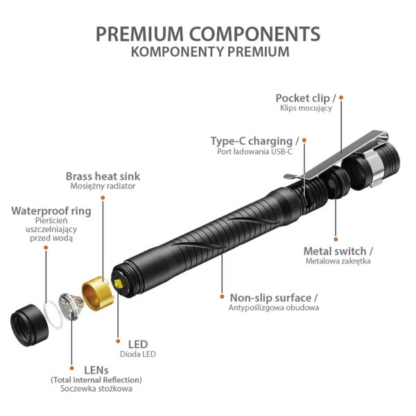 Thanks to the clip, the Aurora A33 can be carried in the chest pocket, so it is always at hand, in full readiness for use. For the sake of the site and the matching of the light source, it is recommended for doctors, paramedics, mechanics, technicians, etc.