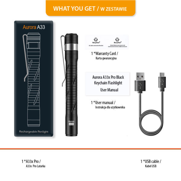 Aurora A33 is a flashlight from the RovyVon® penlighs line. It is a useful light source that can be used for recreation as well as for work.