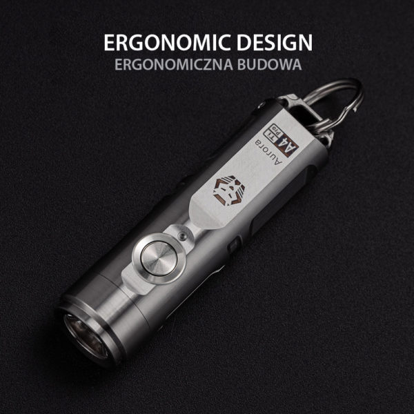 Aurora A4 Pro G4 is a super compact yet bright keychain flashlight, made of titanium. It’s equipped with an CREE XP-G3 cool white LED, a max output of 650 lumens. It runs a 330 mAh battery that can be charged via the USB-C port, when working at moonlight mode, it provides max runtime of 72 hours. The new magnetic pocket clip and magnetic tail base buckle are compatible with the Aurora A4 Pro.