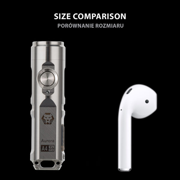 The NEW Aurora A4 Pro is made of TC4 titanium alloy, as known that titanium is anti-corrosion, non-toxic, high strength, etc., it’s lightweight (24g), and durable. The A4 Pro uses a light orange peel reflector that makes the light have a more focused beam. And the fitted tritium vial fob size is 1.5mm (diameter) x 6.0mm (length).