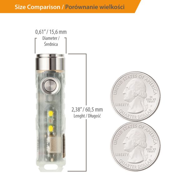 Size: 60.5 mm/2.38”Long, Diameter: 15.6 mm/0.61”, Weight: 17 g / 0.6 oz