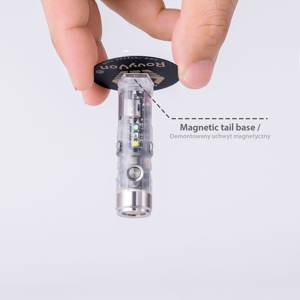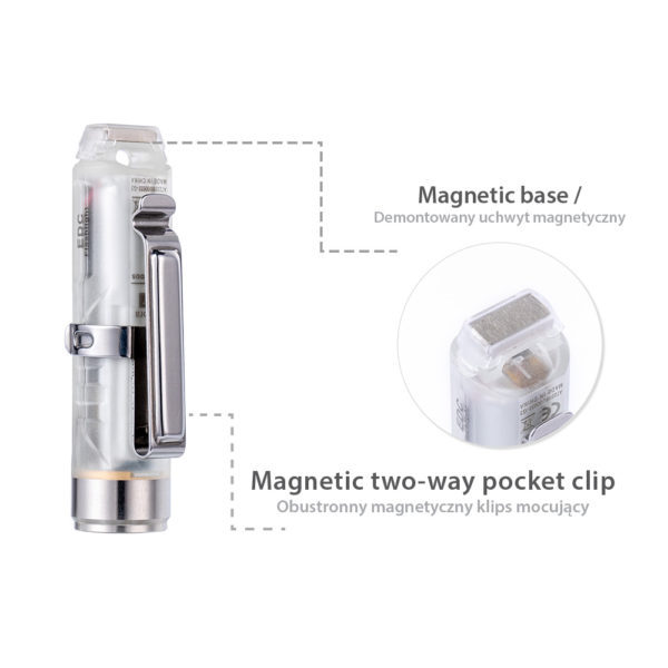 The Aurora A7 is a super compact yet bright keychain flashlight, it’s lightweight and durable thanks to its polyamide material body. It’s equipped with an SST-20 6500K cool white LED, a max output of 650 lumens and a side light. It runs a 330 mAh battery that can be charged via the USB-C port, when working at moonlight mode, it provides max runtime of 72 hours. The new magnetic pocket clip and magnetic tail base buckle are compatible with the Aurora A7.