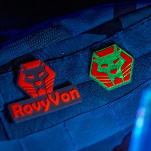 Naszywka RovyVon Patch GITD Small w wykonaniu PVC Glow In The Darkświecąca w ciemnościach po naświetleniu światłem dziennym. Pełni funkcje identyfikacyjne a świecąc w ciemnościach dodatkowo funkcje bezpieczeństwa polepszając widoczność użytkownika.