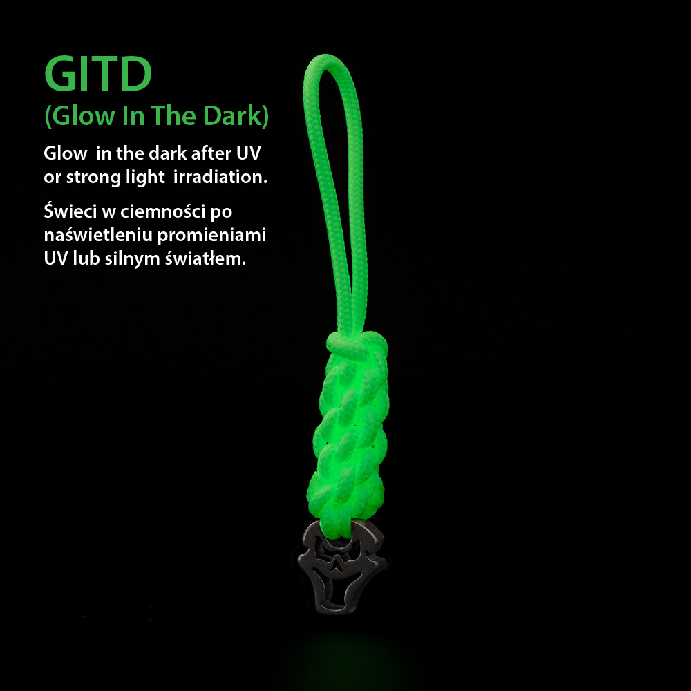 RP10 Titanium Bead is attached to GITD paracord, which glows green in the dark.