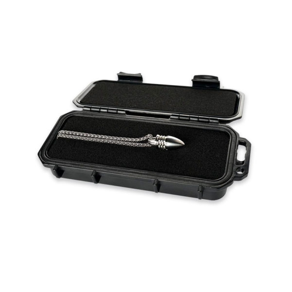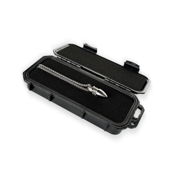 The pendant inspired by the shape of the cartridge may appeal to fans of military and tactical style.