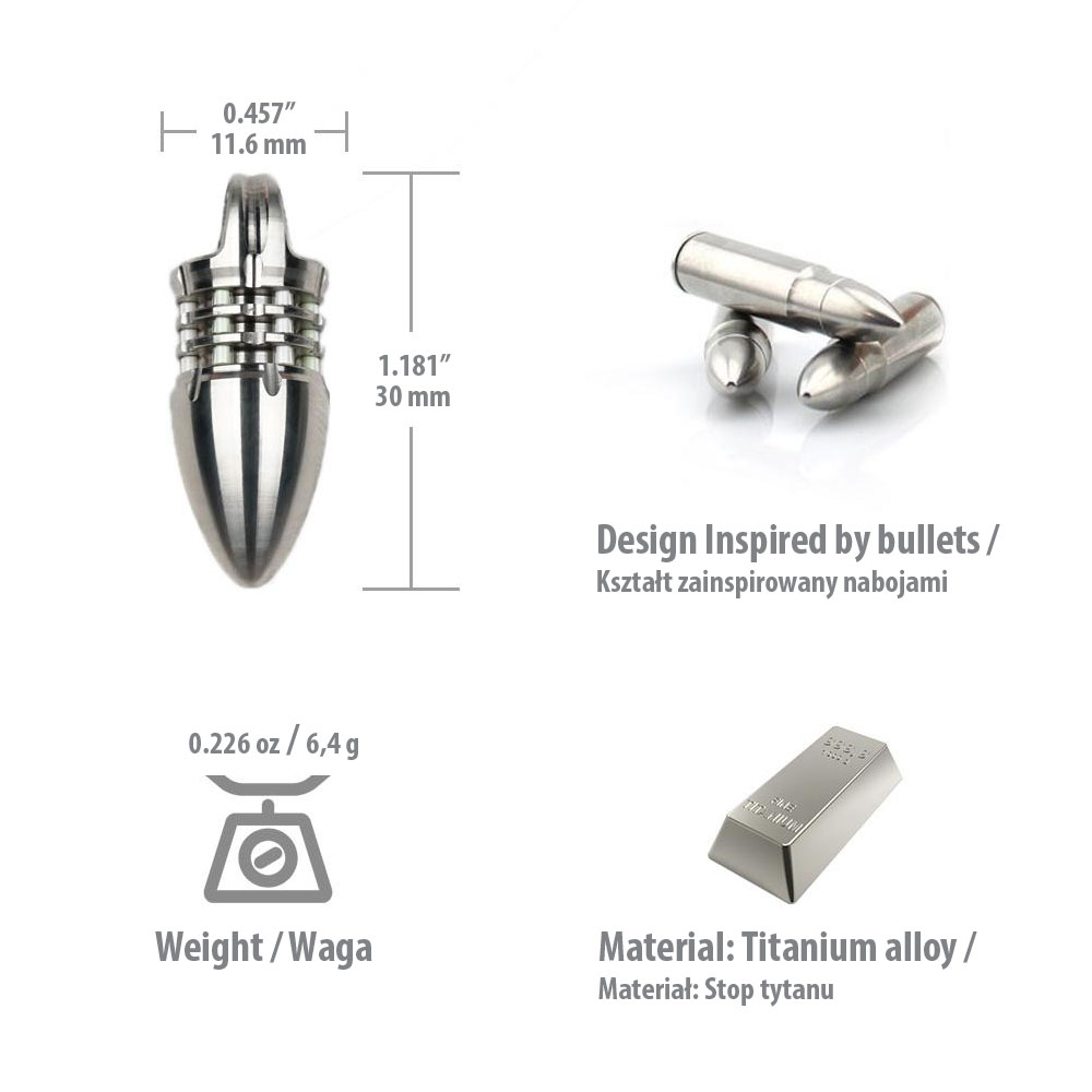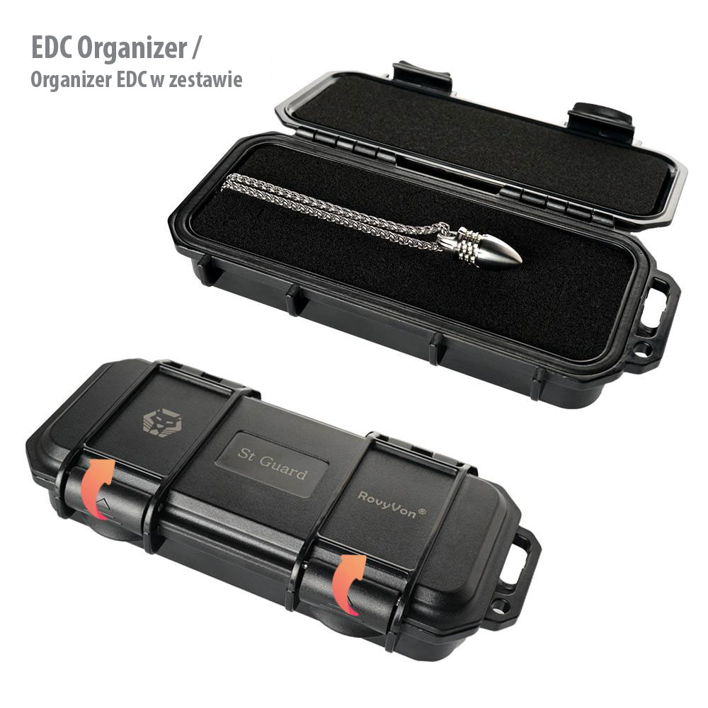 In the set with the pendant / bead, we get a 60 cm stainless steel chain and the EDC RovyVon organizer (the organizer itself can be purchased HERE).