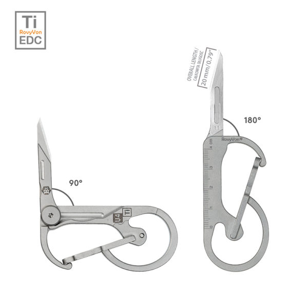 RovyVon Utility U4 Titanium Keychain Carabiner Knife and Measuring Tape is made of durable and lighweight titanium.