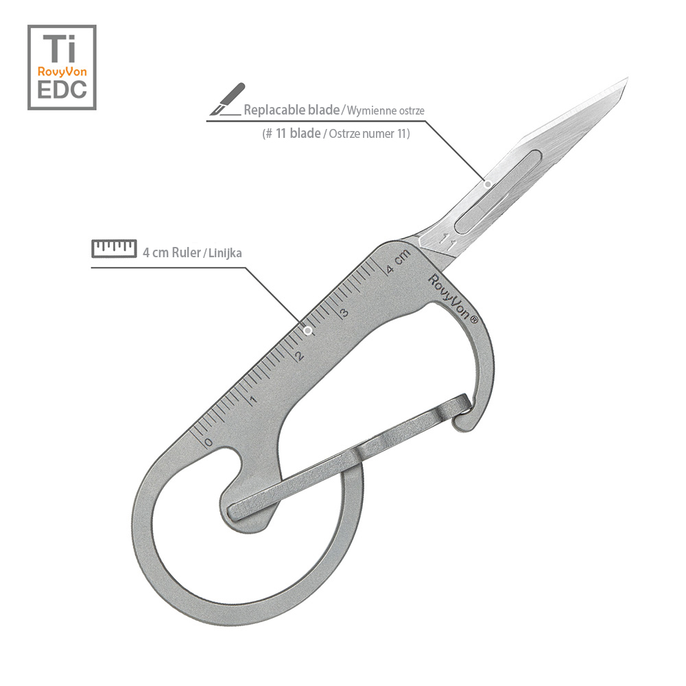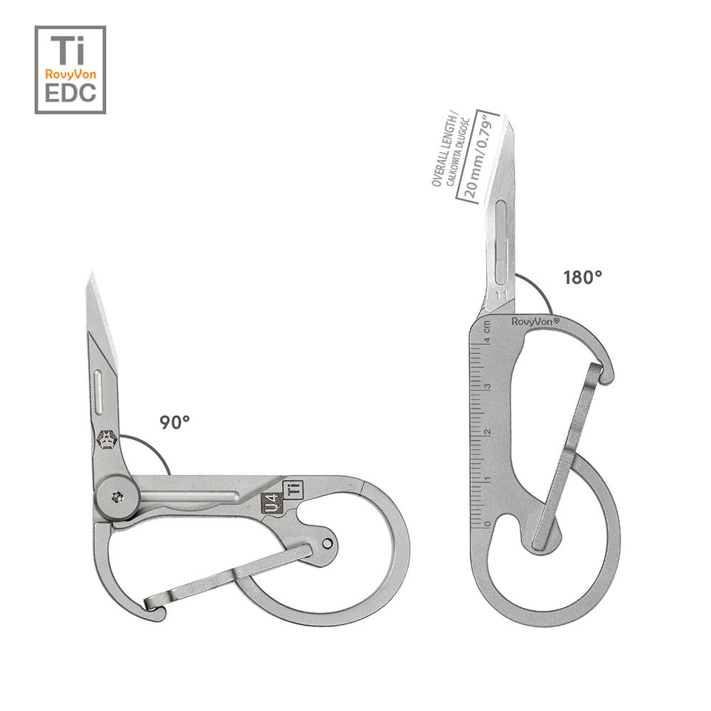 RovyVon Utility U4 Titanium Keychain Carabiner Knife and Measuring Tape