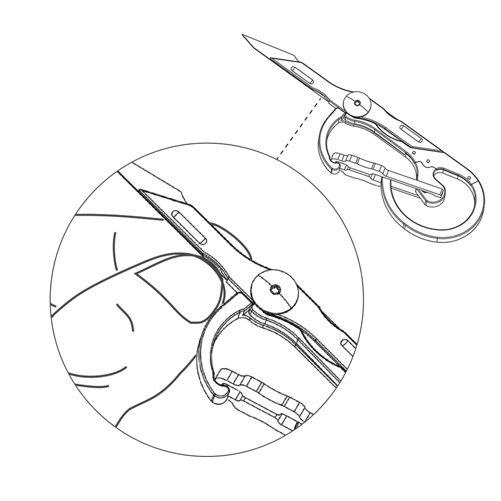 - Contents: carabiner, 5 extra #11 scalpel blade, producer box