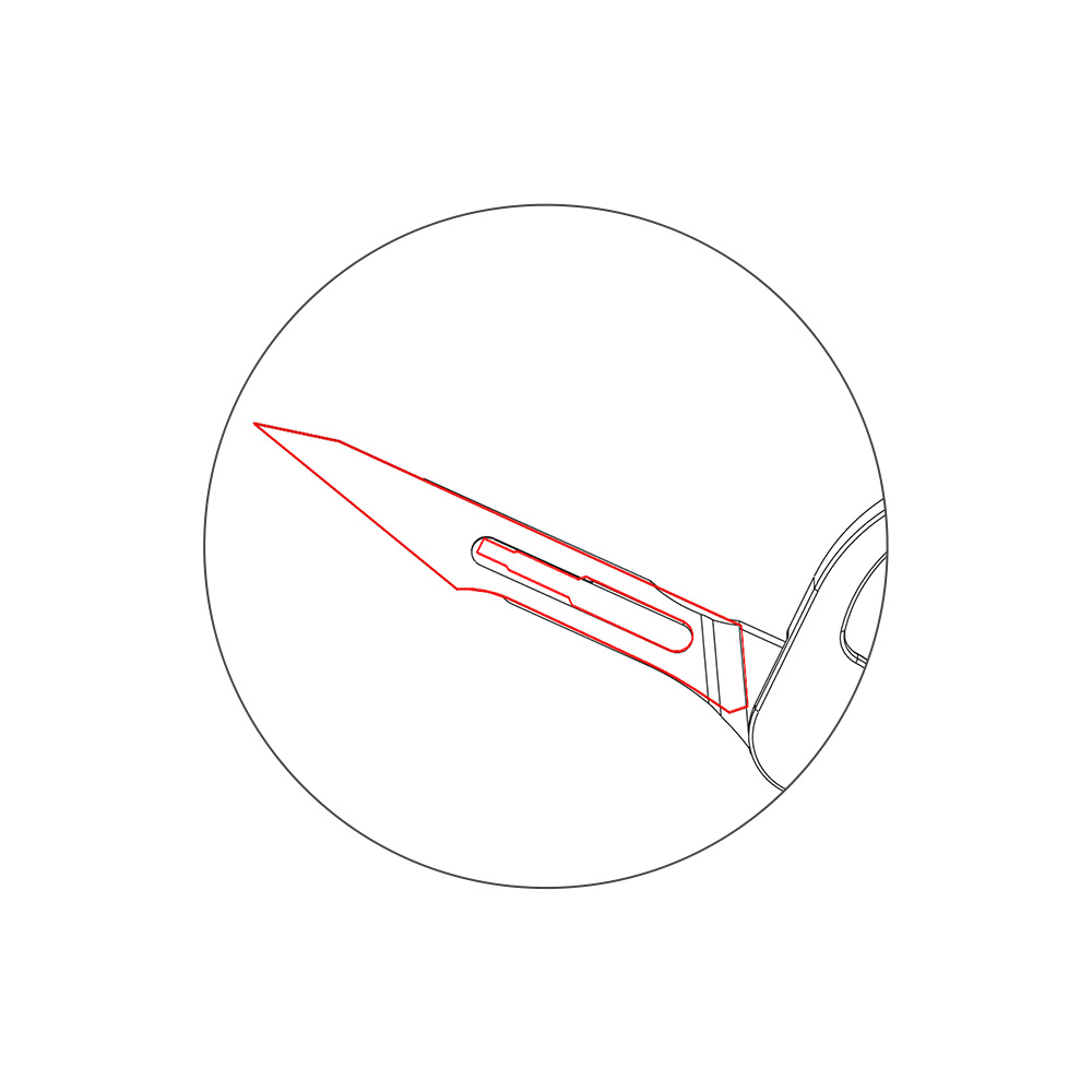 - A folding knife with a replaceable scalpel blade, number 11* (5 extra scalpel blades are included in the set).