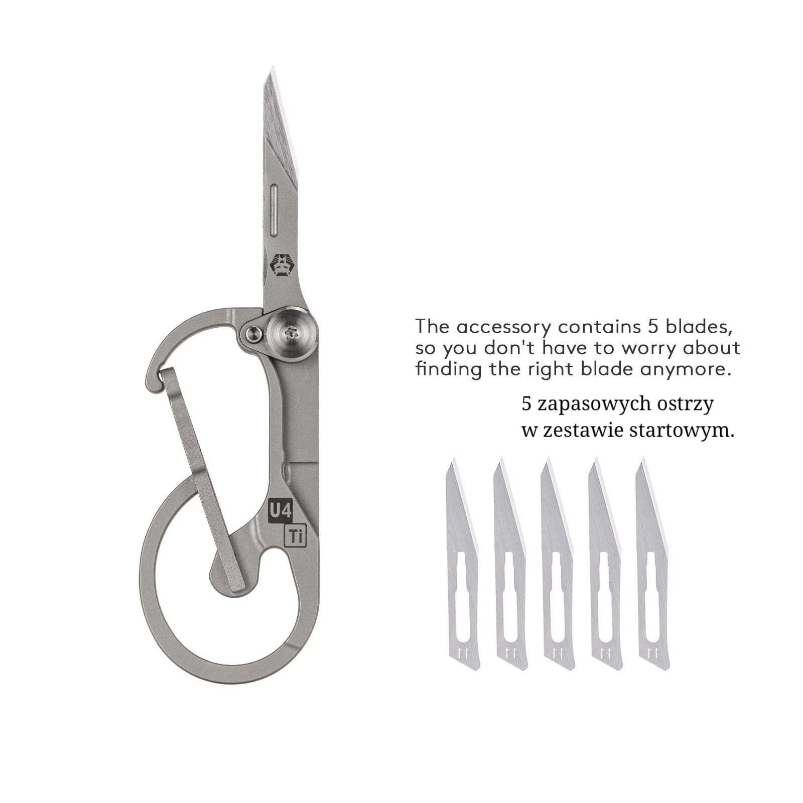 Tytanowy Karabińczyk RovyVon U4 G2 ze Skalpelem i Miarką wykonany z lekkiego i wytrzymałego tytanu.