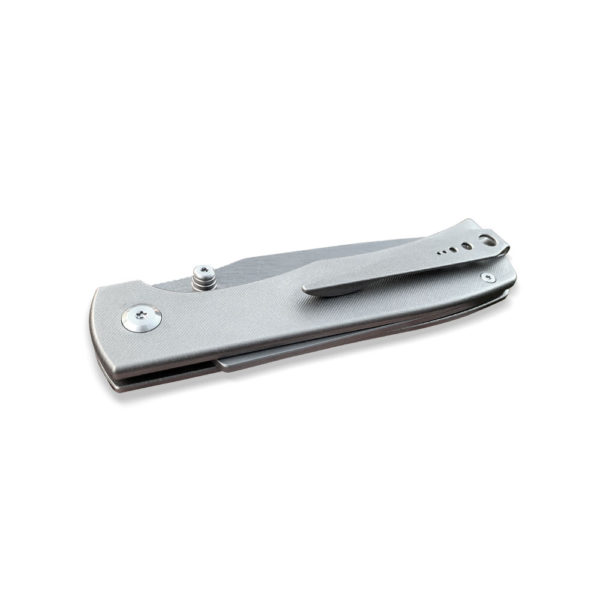 Nóż zaopatrzono w tytanowy klips mocujący typu deep carry umożliwiający dyskretne przenoszenie w kieszeni. Klips posiada możliwość montażu po obu stronach rękojeści, co ułatwia obsługę noża osobom prawo- i leworęcznym. Jest to klips typu tip-up, zlokalizowany na zakończeniu rękojeści noża.