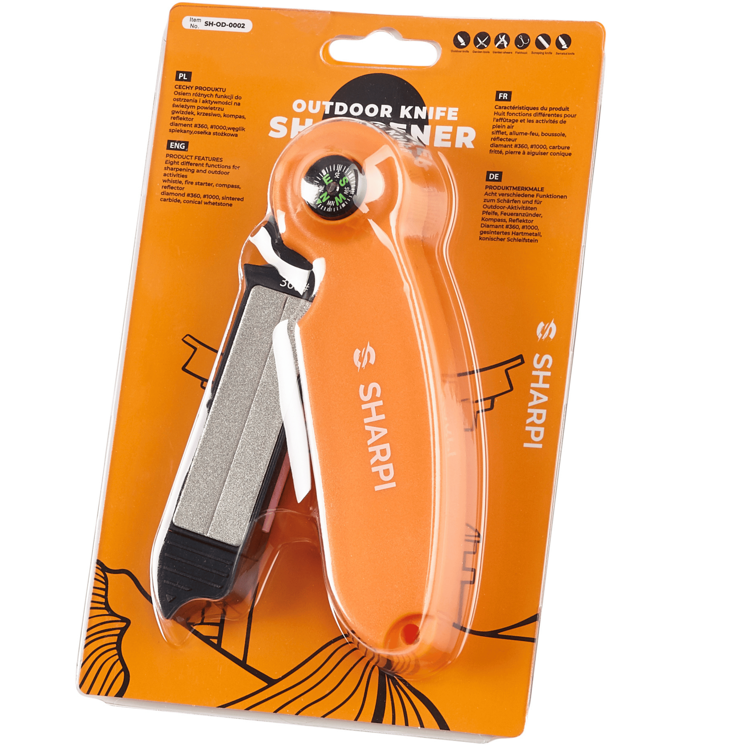 SHARPI 8 w 1 to kompaktowa ostrzałka z ośmioma funkcjami, zaprojektowana z myślą o osobach aktywnych – od miłośników bushcraftu, przez turystów, aż po tych, którzy potrzebują praktycznego narzędzia w codziennym zestawie EDC. Dzięki składanej formie bez problemu zmieści się w kieszeni, saszetce czy bocznej kieszonce plecaka.