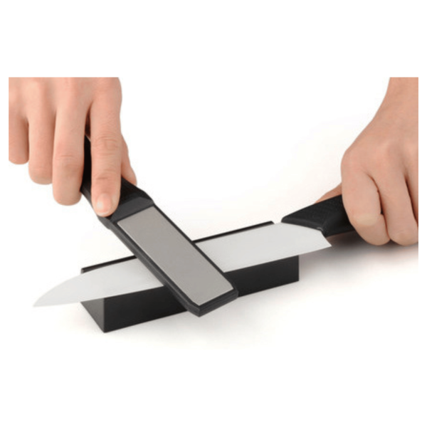 **DWUSTRONNY DIAMENT**: jeden o gradacji #600 do zgrubnego ostrzenia i drugi o gradacji #1000 do wygładzania i szlifowania krawędzi tnącej. Obydwa dedykowane do do szerokiej gamy noży kuchennych, w tym noży ceramicznych i noży szefa kuchni. Materiał ścierny z diamentu daje wymaganą ostrość i precyzję ostrzenia.