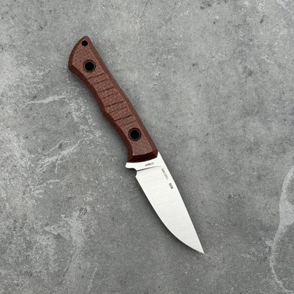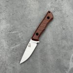 - Blade: Fixed (full tang), drop point, flat grind, plain edge