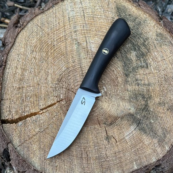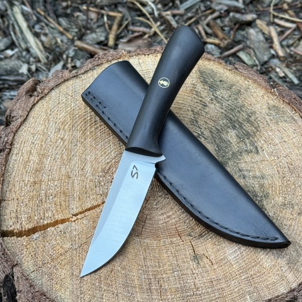 SJ-Knife Wilczy Pazur ‘Włóczykij’ Satin Elmax Stabilized Black Hornbeam Black Leather Sheath