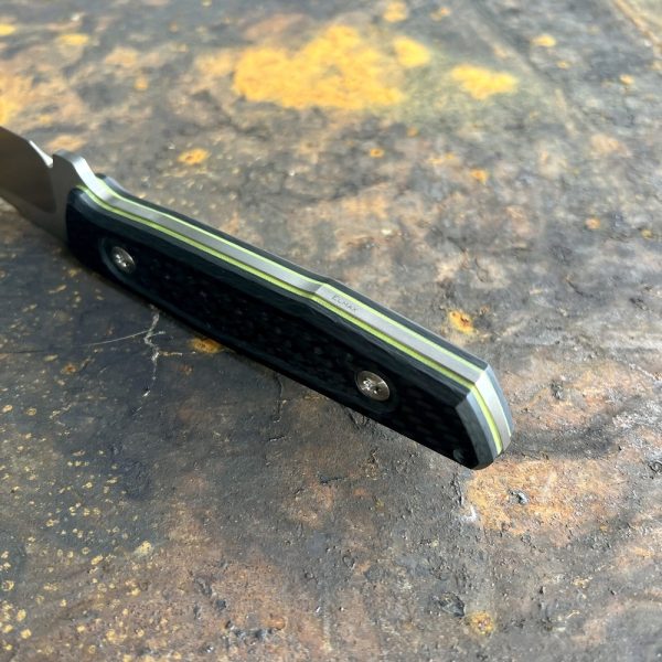 - Handle: Carbon fiber with green G10 spacers (toxic green)