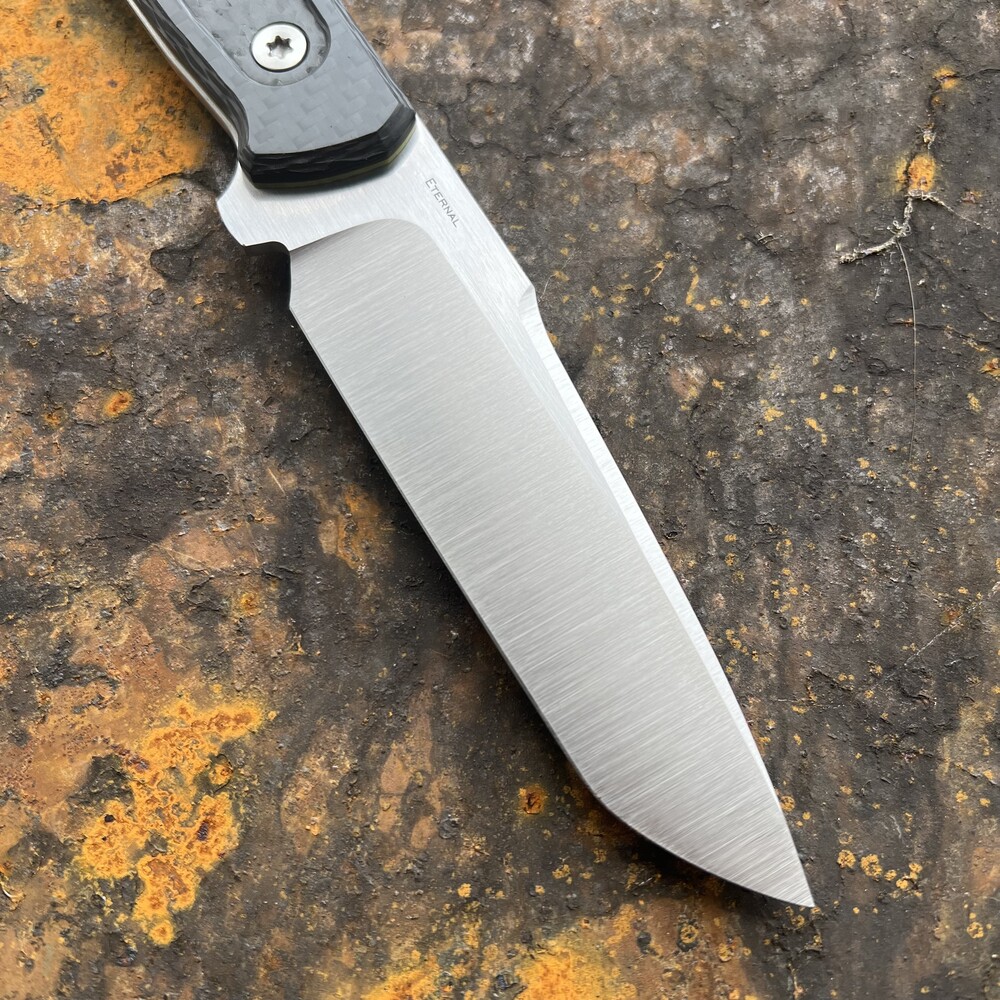 - Steel: Elmax (60-61 HRC), satin finish on grind, stonewash finish on flats