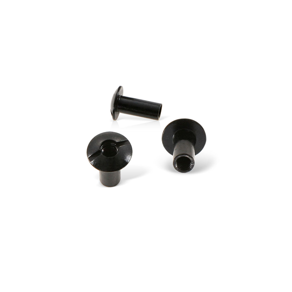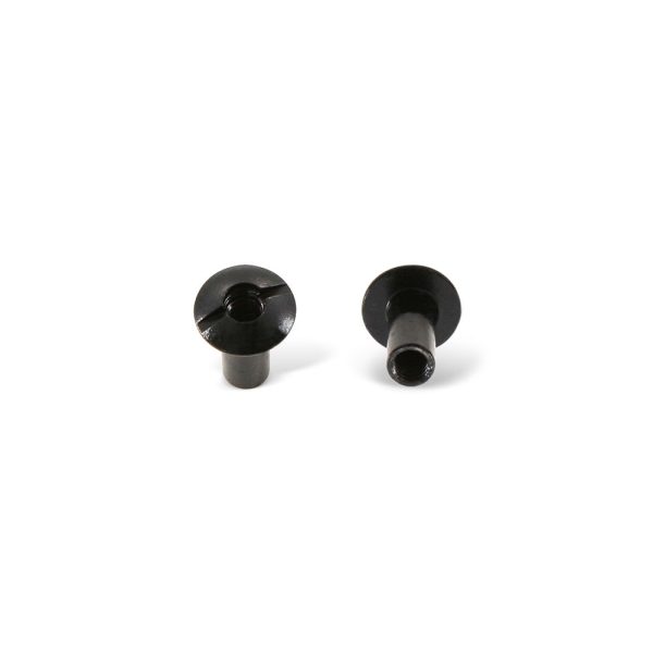 Together with the PHILIPS screw (SCREWS AVAILABLE SEPARATELY) they are used to attach the handles of sheaths and holsters. Because they are slotted, they can be easily tightened or loosened with a slotted screwdriver (SL – SLOTTED). The steel binding post fits any screw with 8-32 thread.