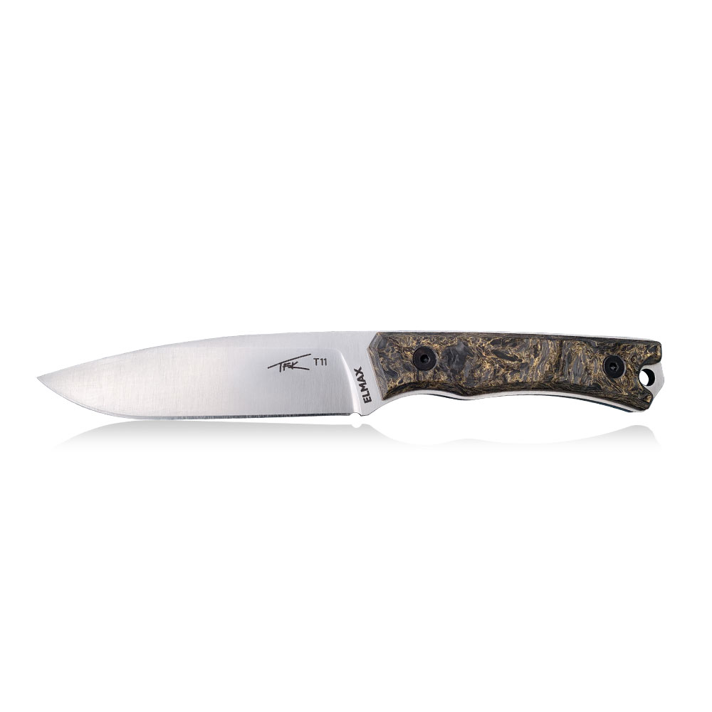 The presented T11 knife is made of Elmax steel. Elmax is one of the few steels available on the market in the absolute top quality of materials used in the production of premium knives. Knives made of it are extremely resistant to overload, stay sharp for a long time and have excellent anti-corrosion properties.