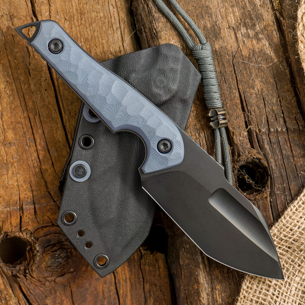 - Steel: Sleipner (~61 HRC), black DLC coating