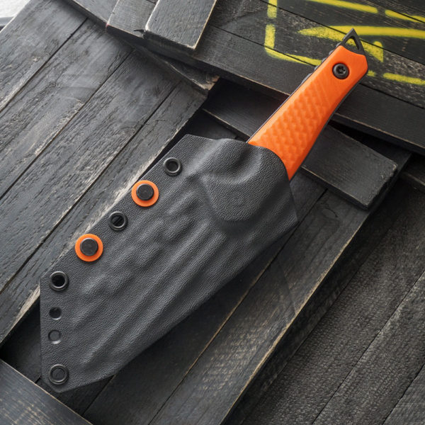 - Handle: orange G10 with transverse style texturing