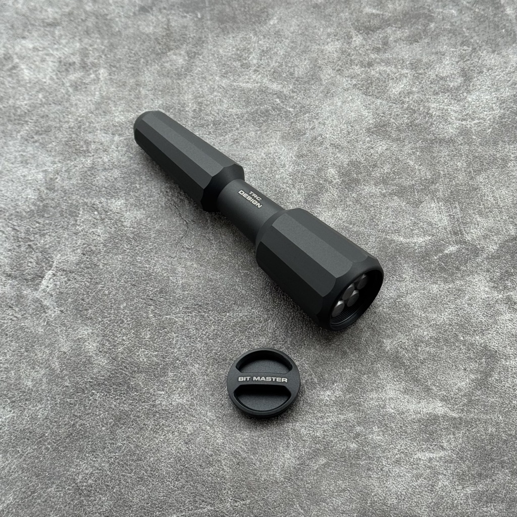 Weighing 97 g with bits and 65 g without, the Bit Master is comparable in weight to a compact folding knife. The internal cavity is engineered to reduce mass without compromising structural integrity. -