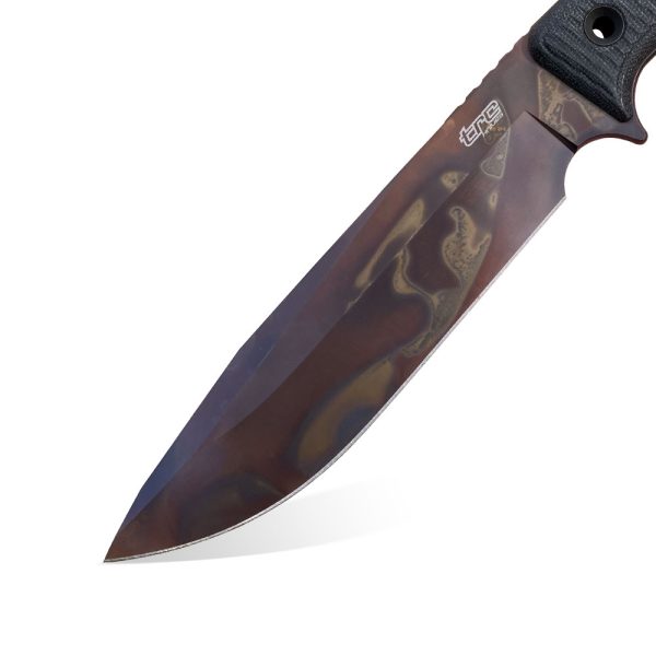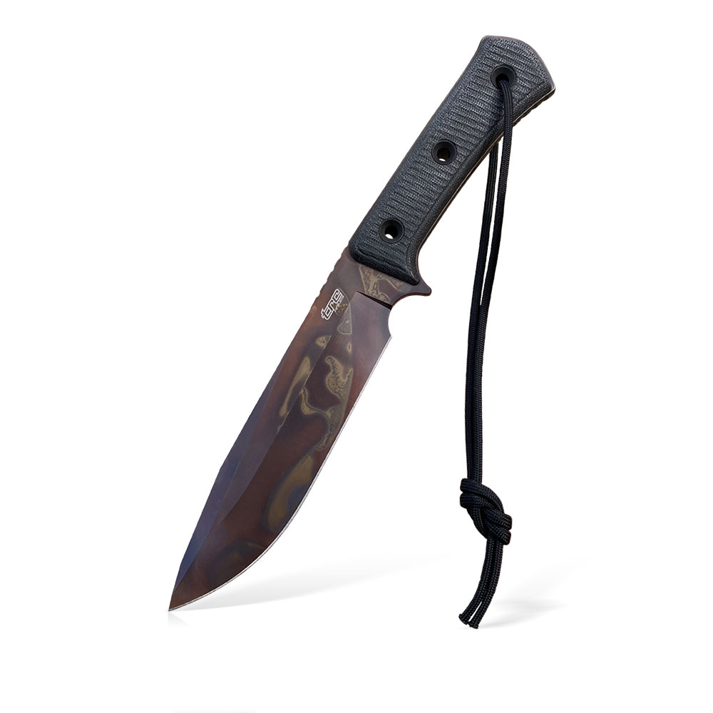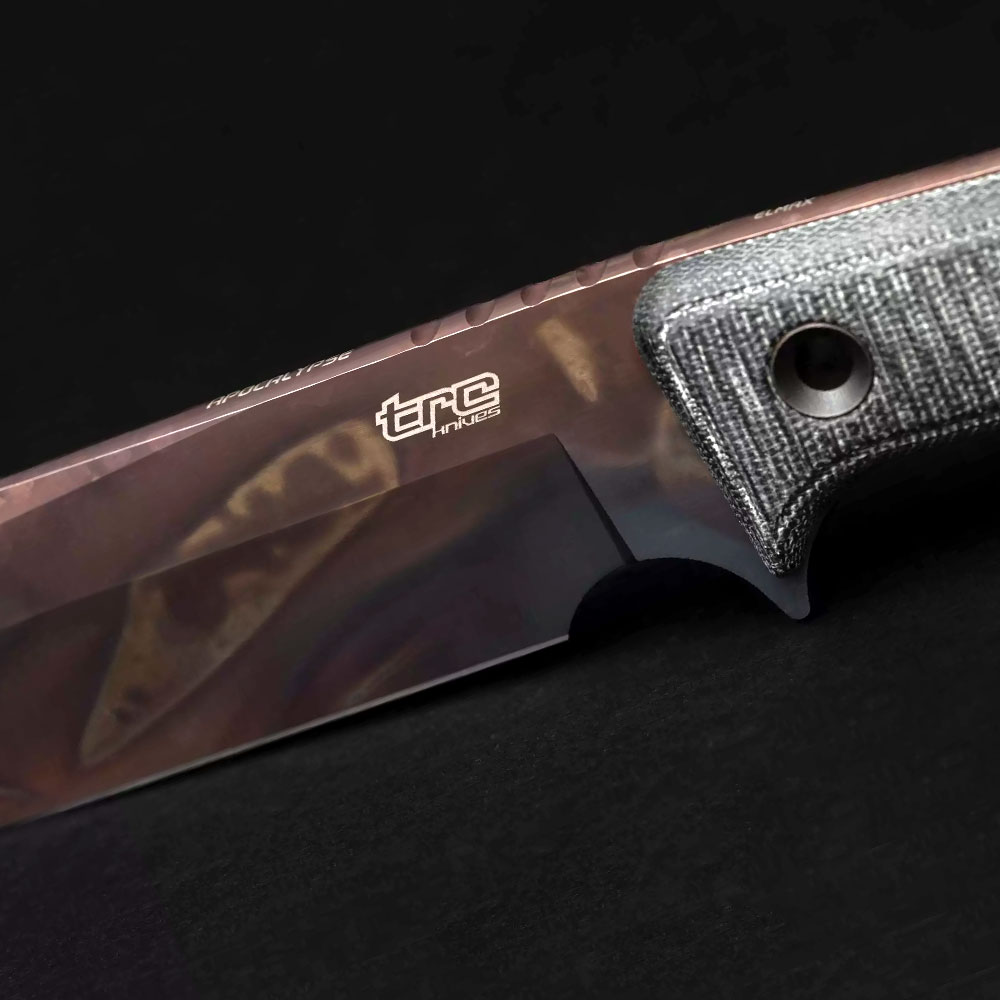 TRC Knives Apocalypse Apocalyptic Black Canvas Micarta with a fancy blade finish, in which the Lithuanian manufacturer specializes.