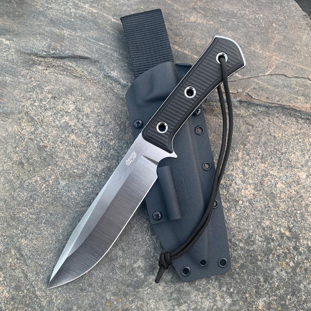 TRC Knives Apocalypse Kapuga Edition in the presented versionhas a satin finish blade made of premium steel Elmax, a handle made of very durable, black G10 composite and a black kydex holster.