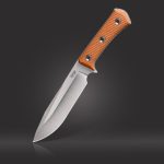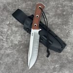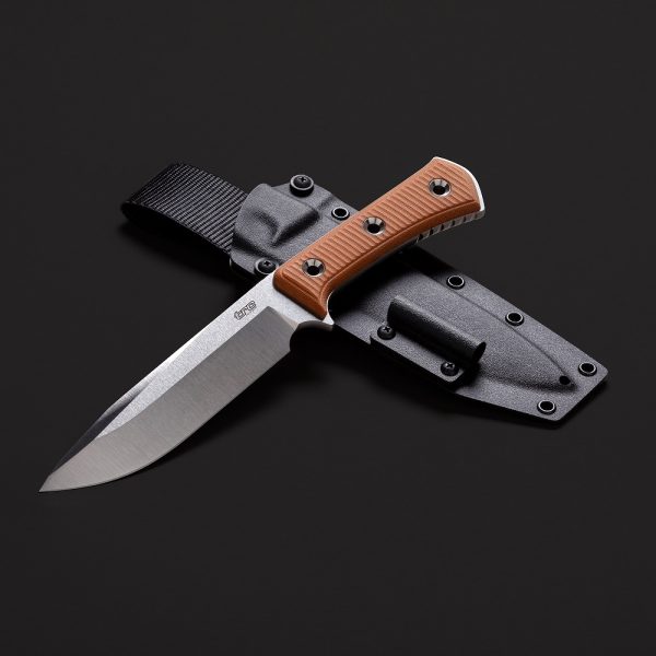 - Blade: Fixed (full tang), drop point profile with flat grind, plain edge