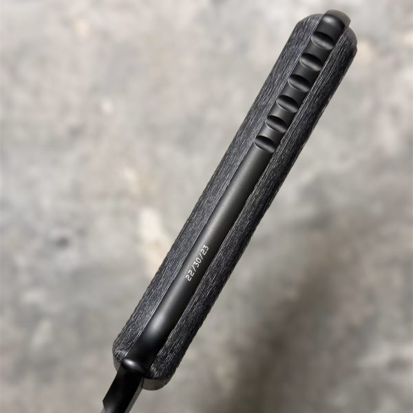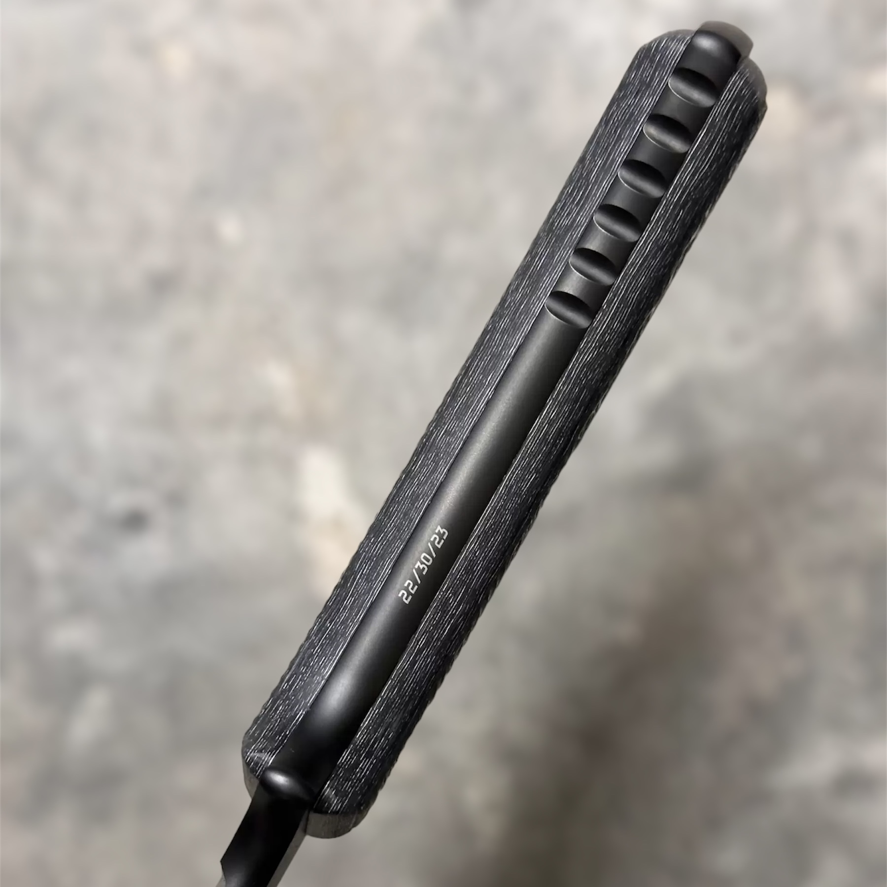 - Steel: Elmax (59-60 HRC), black DLC coating (~90 HRC)