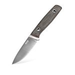 - Blade: fixed (full tang), drop point profile with full flat grind (FFG), plain cutting edge