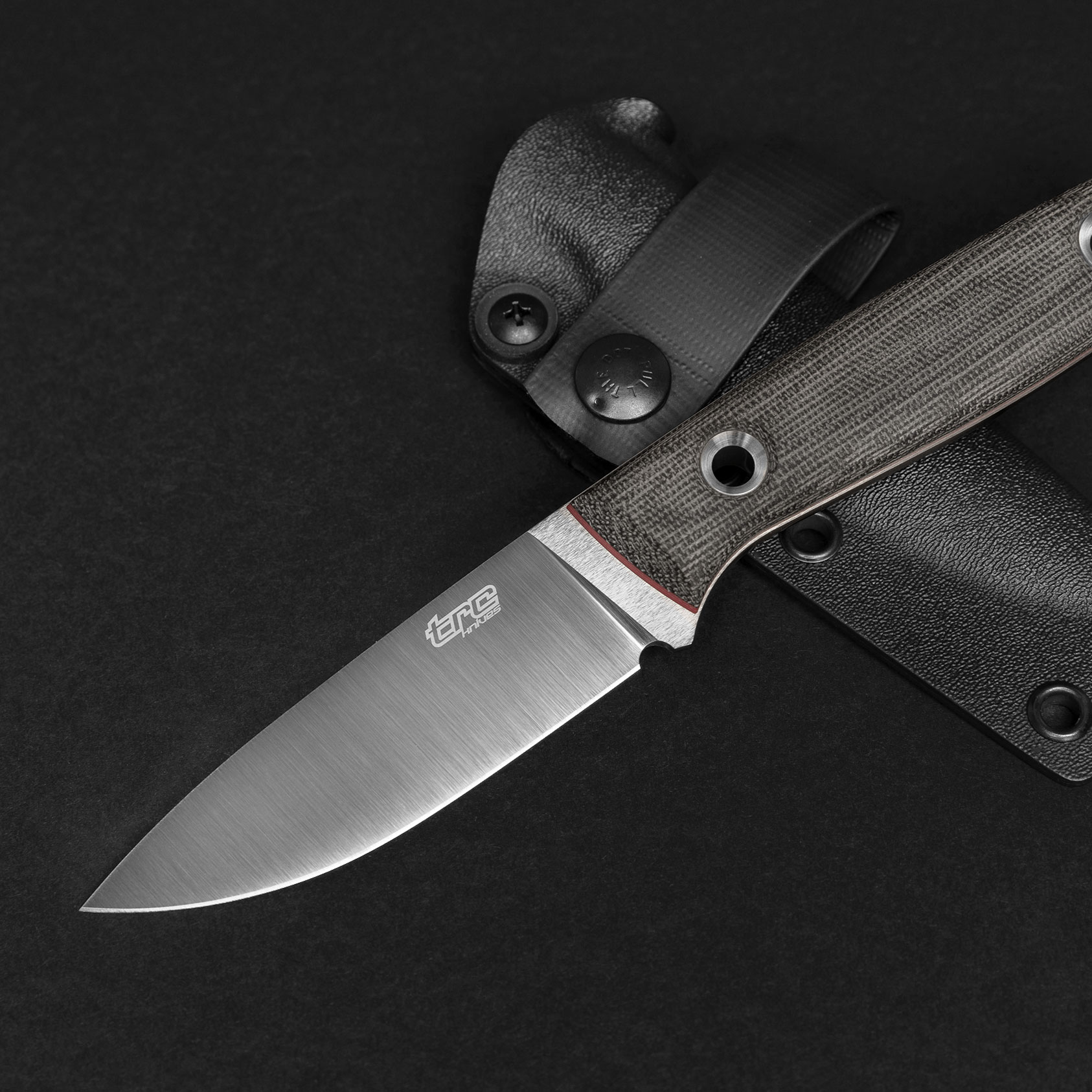 TRC Knives Classic Freedom Satin M390 Black Canvas Micarta Red Liners Kydex
