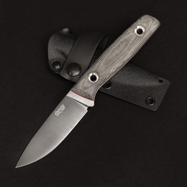 TRC Knives Classic Freedom Satin M390 Black Canvas Micarta Red Liners Kydex is another member of the “freedom” family from the workshop of the Lithuanian manufacturer. Classic Freedom, smaller than This Is Freedom, has already seen several realizations and enjoys undiminished popularity. No wonder. Classic Freedom is an extremely handy knife with a very versatile shape and application. Hence, it is often chosen for field trips, mountain trails, and campsite kitchens.
