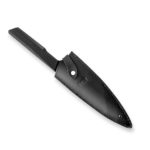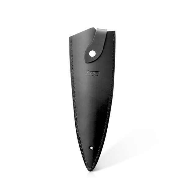 The knife comes with a leather sheath made entirely by hand from high-quality, thick, vegetable-tanned Italian leather. The black sheath has the TRC Knives logo. The sheath has a leather clasp that prevents the knife from falling out during carrying or storage.