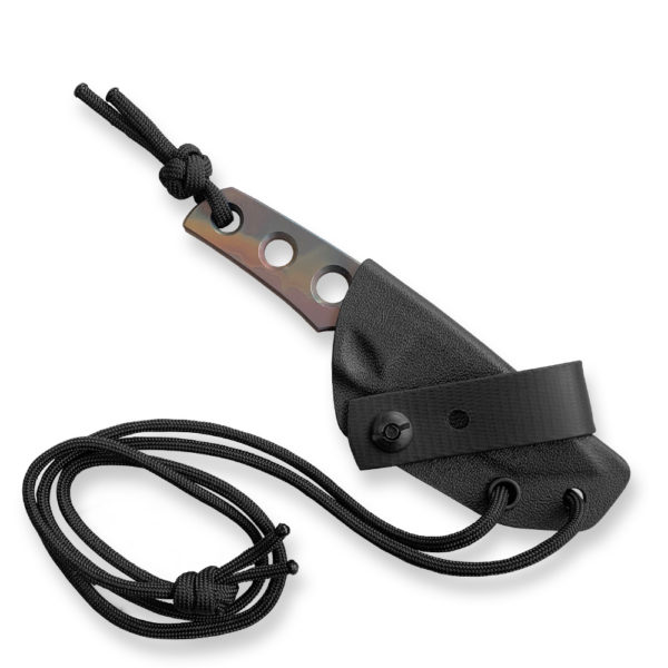 Apocalyptic finish is totally diffrent in each Mini Tanto knife and makes every sigle blade very unique. Mini size makes him really handspocket and useful in every day life. Extremely sharpen ELMAX steel with TANTO cutting edge simplify cutting process even with tough materials. Included handmade Kydex ® sheath let you keep your knife sticked to your belt or use it us a neck knife with help of attached string.