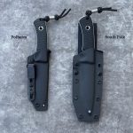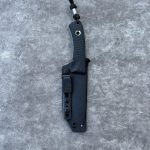 To facilitate the removal of the knife, which fits very well in the tight-fitting material, a thumb support has been planned, thanks to which the knife can be removed in a controlled and safe manner. Kydex itself is a very durable material that is characterized by high resistance to impacts, scratches, low moisture absorption, resistance to various weather conditions and many chemicals. We use holsters made of it comfortably and for a long time. The holster is equipped with pass-through pins to which you can attach, for example, a flint holder (not included in the set) or use them to attach it to a backpack, harness element or Molle type solution.