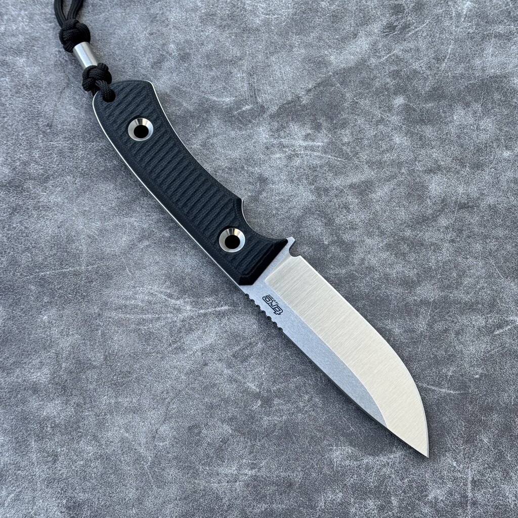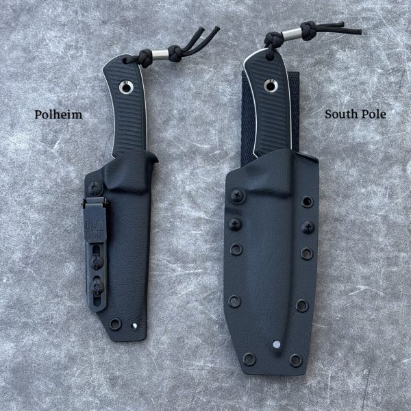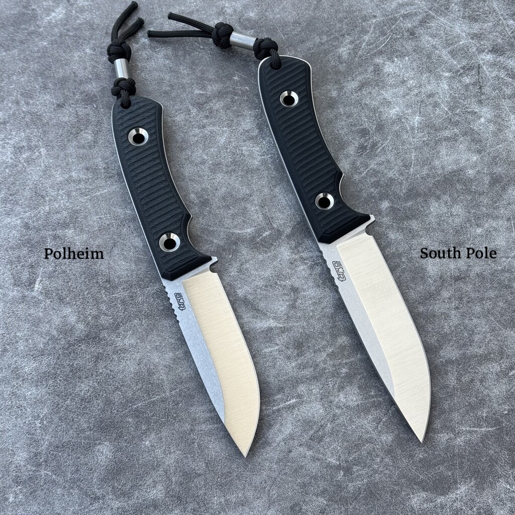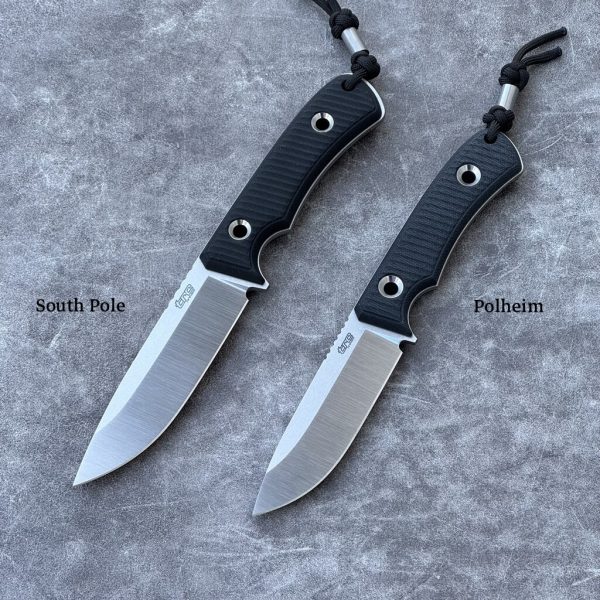 **Polheim is an evolution of the previously produced K-1s knife, a great universal blade from the TRC Knives offer. Compared to K-1s, Polheim offers a slightly thinner blade and a higher grind, which improves cutting efficiency. Subtle slimming of the blade (from 3.8 mm | 0.15 ” to 3.5 mm | 0.12″), using the modern MagnaCut steel known for its strength, gave great utility effects. Enlarging the undercut in the blade (choil) is designed to make sharpening even easier, and the jimping in the new style refers to the best features of the South Pole knife. The changes also affected the handle. The grip linings gained a new texture, no less grippy than the older one found in the K-1s, but emphasizing the separateness of the new model.