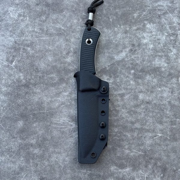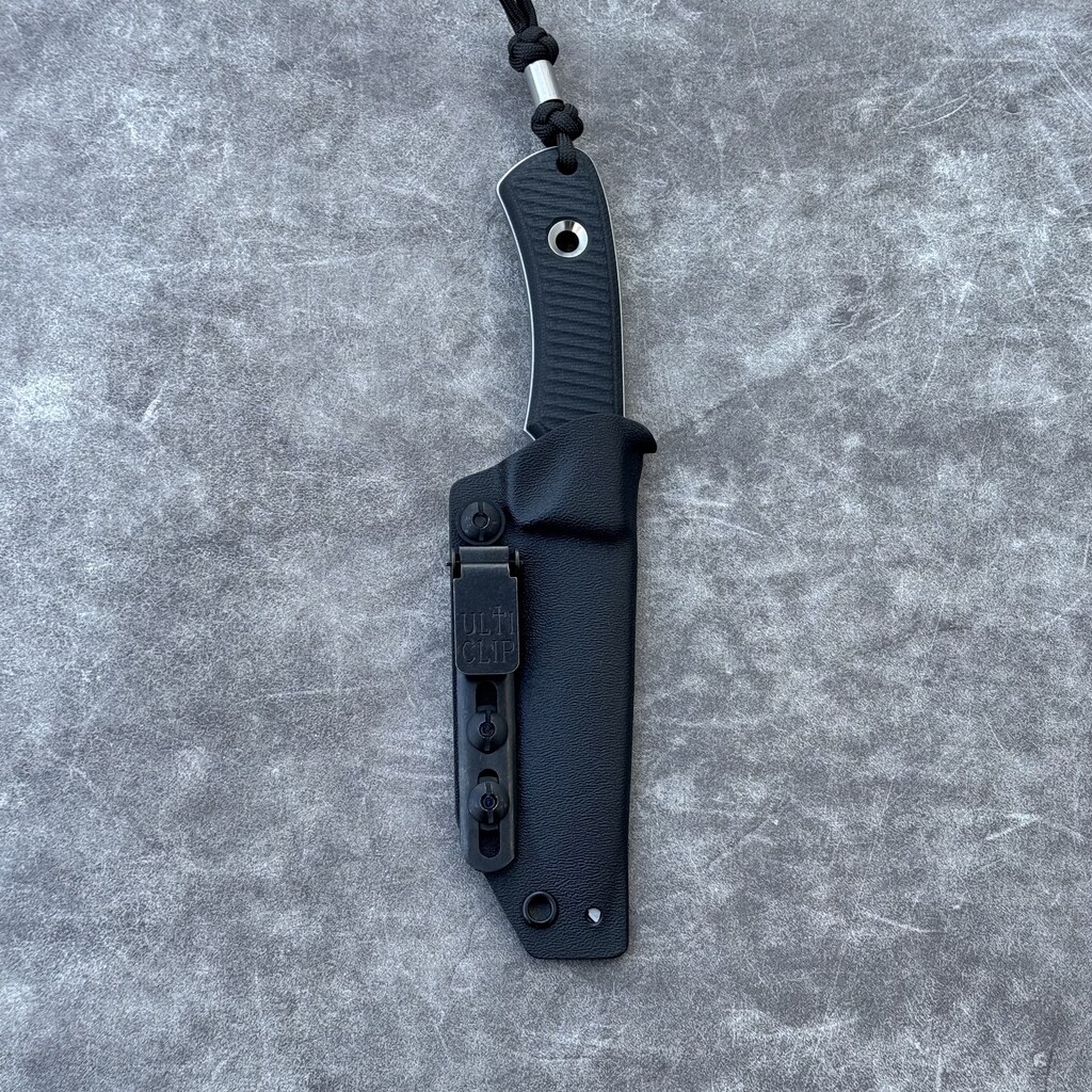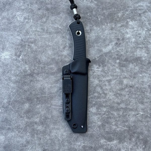Knife comes with holster made of hand-formed black kydex material, which we attach to the belt with the UlliClip (US Made). The clip allows you to mount the whole thing on a belt or on the edge of a pocket inside or outside