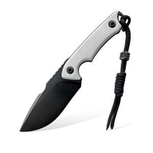 - Blade: fixed blade (full tang); drop point style blade with flat grind and plain cutting edge