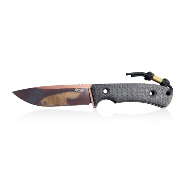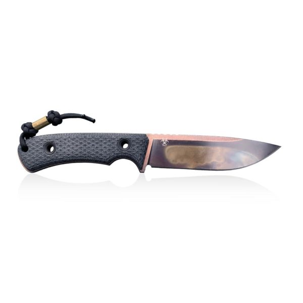 Attention in the model is also attracted by the handle linings made of Black Canvas Micarta. Brown and grey tint of the handle plus many of brown tints in apocalyptic blade create amazing color effect.