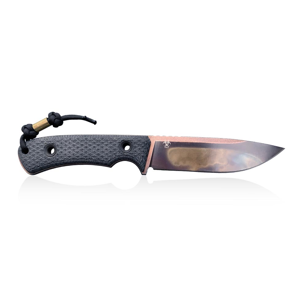 In addition to the TRC Knives logo, the name of the knife and its serial number on the blade, we will find on the blade: characteristic symbol of this mini serie: “biohazard” engrave with the year 2022. This is an obvious reference to the viral emergency situation that has occurred all over the Earth, putting individuals, societies and countries in an unprecedented in recent years an exceptional situation, actually changing our existing existence.