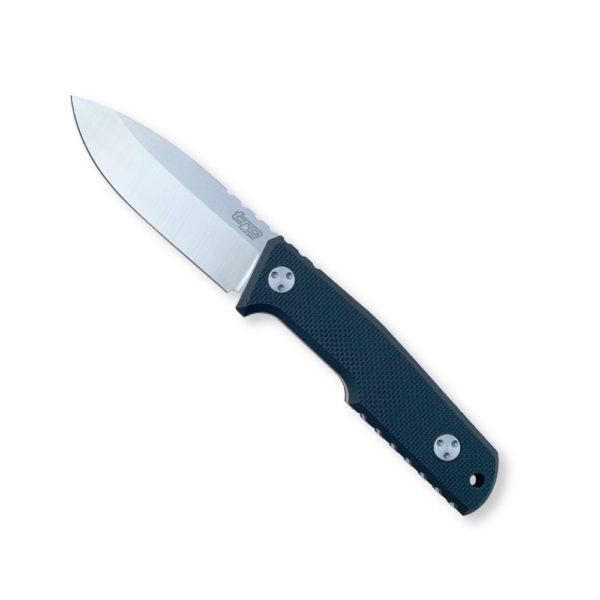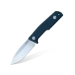 Lining of the handle with an ergonomic, oval shape is made of black G10 composite resistant to moisture, temperature changes, most solvents and acids, having high resistance to mechanical damage. The material has a non-slip, rough structure that makes the grip more stable. The linings were installed permanently. They have been glued and screwed with decorative stainless steel screws, in an appearance consistent with the general design of the knife. The screws are permanently installed, do not unscrew them yourself, so as not to void the warranty. The whole well-thought-out design makes the handle fits very well to the hand and the grip is firm and secure. At the end of the handle, there is a hole for attaching an additional cord, which can be used as a protection against dropping the knife during work, or an additional gripper that makes it easier to remove the knife from the holster.