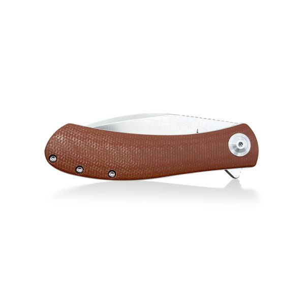 Trollsky Knives Mandu Brown Micarta | Satin D2 is a folding knife designed by one of the most globally recognized Polish knifemakers. It features a convenient everyday use blade with compact dimensions and an inviting appearance. The design is marked by shapes, overall aesthetics, and distinctive details characteristic of the knifemaker. A must-have for enthusiasts of Michael Trollsky’s work and anyone who can’t imagine their daily routine without a handy blade at their disposal.