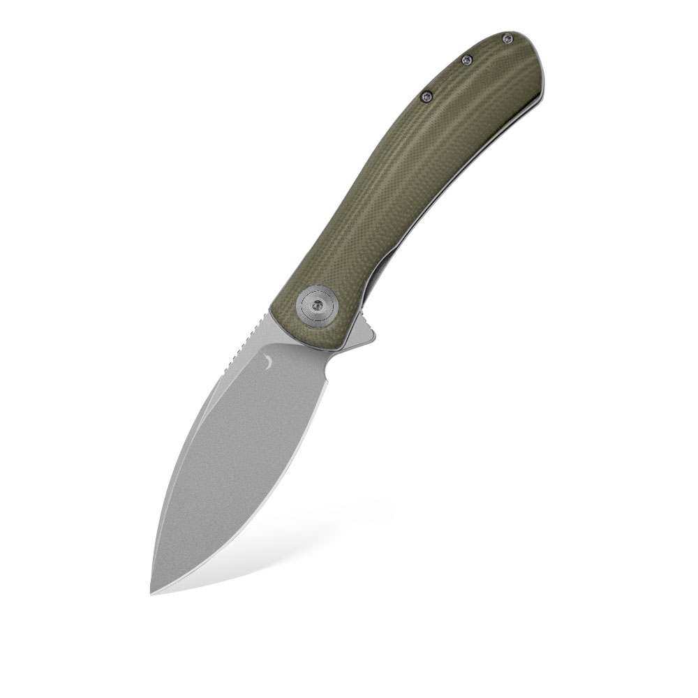 **HANDLE SCALES**: The handle scales are made of modern materials—either micarta or G10, depending on the version. Both are known for durability and resistance to environmental factors. Micarta is made from resin-impregnated fabric layers, offering a warmer, more natural look and excellent grip. G10 is a fiberglass and resin laminate, harder and less absorbent, with a sleek, technical feel.