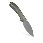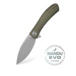 Trollsky Knives Mandu EVO Folding Knife MTE001 Liner Lock Grey Stonewashed 14C28N OD Green G10