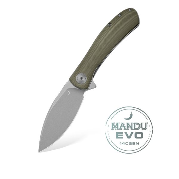 **FLIPPER OPENING & SECURE LOCK**: The knife opens smoothly using the flipper tab, which, once deployed, also acts as a finger guard preventing your hand from sliding onto the edge. Thanks to ceramic ball bearings, the opening action is fluid and fast. The knife is equipped with a reliable liner lock that automatically engages upon opening, preventing accidental closure. This easy one-handed operation places the Mandu EVO firmly in the modern folder category.