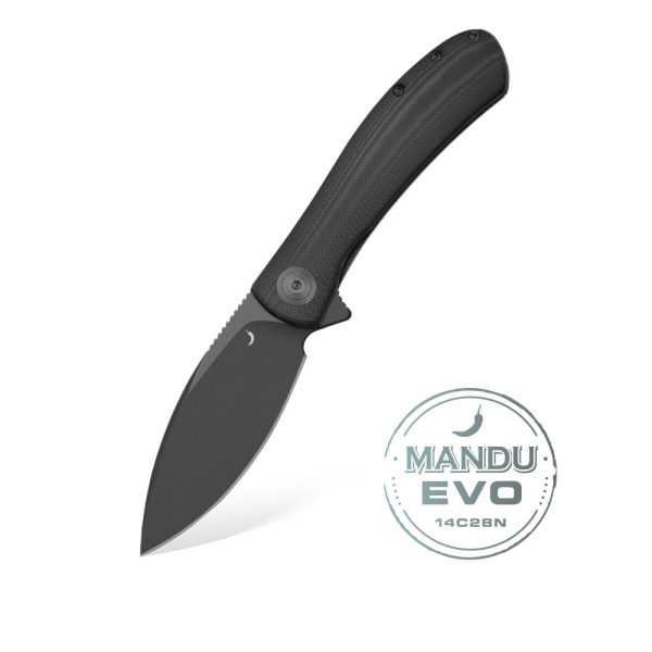 **FLIPPER OPENING & SECURE LOCK**: The knife opens smoothly using the flipper tab, which, once deployed, also acts as a finger guard preventing your hand from sliding onto the edge. Thanks to ceramic ball bearings, the opening action is fluid and fast. The knife is equipped with a reliable liner lock that automatically engages upon opening, preventing accidental closure. This easy one-handed operation places the Mandu EVO firmly in the modern folder category.