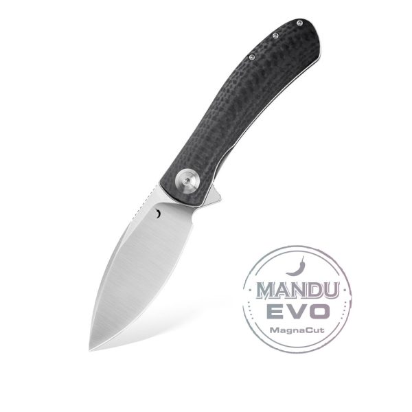**FLIPPER OPENING & SECURE LOCK**: The knife opens smoothly using the flipper tab, which, once deployed, also acts as a finger guard preventing your hand from sliding onto the edge. Thanks to ceramic ball bearings, the opening action is fluid and fast. The knife is equipped with a reliable liner lock that automatically engages upon opening, preventing accidental closure. This easy one-handed operation places the Mandu EVO firmly in the modern folder category.