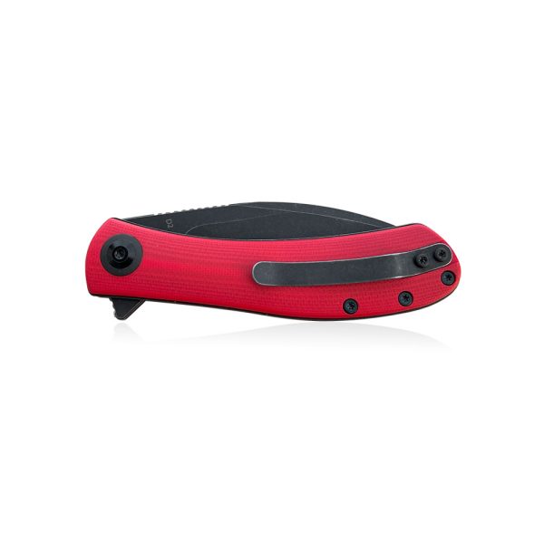 - Handle: stainless steel liners and backspacer, red G10 scales, stainless steel (Tip-Up)